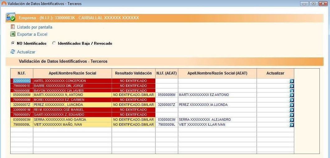 A partir del 1 de enero de 2018 todas las declaraciones informativas presentadas a la AEAT tienen que tener los datos correspondientes a los NIF y Nombre o Razón Social tal y como constan en su censo